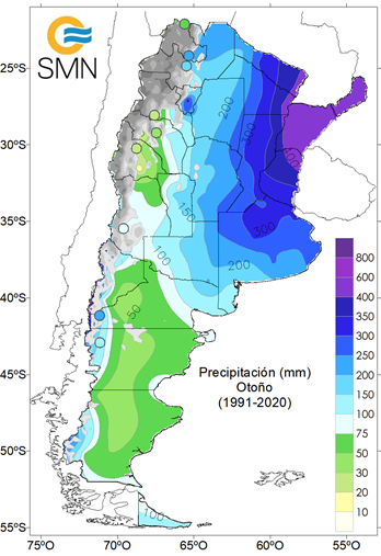 Los meses otoñales suelen ser bastante lluviosos, especialmente en el norte del litoral argentino y en el sur de Patagonia. El noreste del país suele recibir, en promedio, más de 400 mm de lluvia durante esta temporada, y para muchas ciudades, marzo y abril constituyen uno de los meses más lluviosos del año.